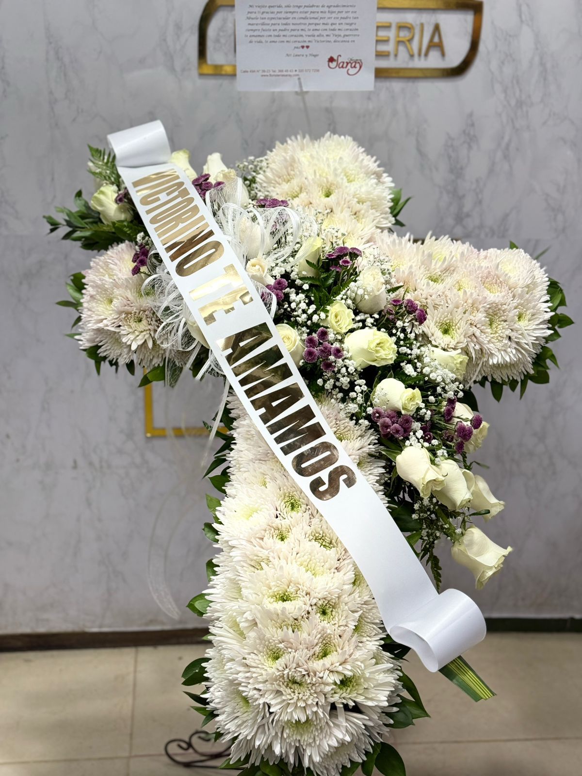 Corona funebre en rosas y orquideas